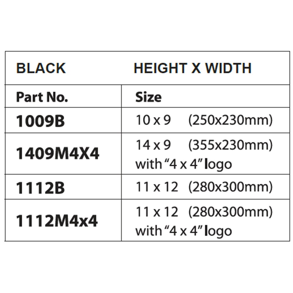 Injected moulded, these black mudflaps protect the body of your vehicle by minimising mud, water and debris spraying from the wheels . Custom branding options available, tooling costs and MOQ apply.